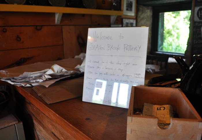 at one point in my life I dreamed about being a potter and living in the country. Timothy Smith has a studio near the cottage called gleason brook pottery. I'm sure if you were a ceramics student at sheridan you would of interned with him. his studio is above his shop and his lovely house is behind the kiln building. I sometimes wonder if I could be away from the city - I'm sure I would enjoy it in the warmer weather. if you go visit gleason brook pottery and timothy happens to busy - no worries, you can have a browse and make your own change.